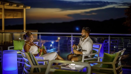 Die aus zwei- und dreistöckigen Reihenhäusern mit 134 Zimmern und 176 Appartements bestehende Ferienanlage liegt an einem Hang direkt am Meer.