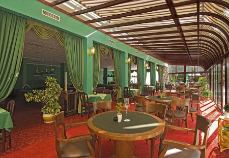 Einrichtungen: Restaurant, Restaurant à la carte, Aperitifbar, Lobbybar mit Terrasse, Wintergarten, Süßwasser-Swimmingpool mit Whirlpool (in Betrieb vom 01.05. bis 15.09.), Poolbar und Sonnenterrasse mit Liegestühlen und Sonnenschirmen (kostenlos, begrenzte Anzahl), Süßwasser-Hallenbad. Parkplatz gegen Gebühr (12 € pro Tag vom 26.04.-14.06. und 01.-14.09., 20 € pro Tag vom 15.06.-30.08., sonst kostenlos; begrenzte Anzahl). WiFi-Internet im Bereich der Lobby, Bar und im Restaurant verfügbar (kostenlos).