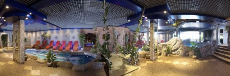 Wellness-Center: Spa-Bereich mit Süßwasser-Innen- und Außenpool, Whirlpool, zwei Warmbäder, Kaltwasserbad, Türkisches Dampfbad, Finnische Sauna, Russische Sauna, Aromasauna, Kneippbecken sowie Fitnessraum. Die Nutzung der Saunawelt ist für Hotelgäst kostenfrei, Massagen und Schönheitsanwendungen werden gegen Gebühr angeboten.