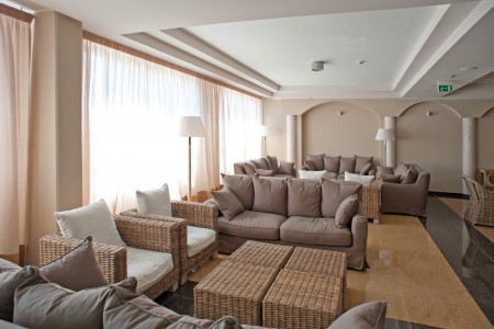 Einrichtungen: elegante Lobby mit Rezeption und Sitzecken, Restaurant/Pizzeria mit großer Terrasse, Cafébar mit eigener Konditorei. Süßwasser-Swimmingpool mit abgeteiltem Kinderbereich, großer Sonnenterrasse, Liegestühlen und Sonnenschirmen (kostenlos, begrenzte Anzahl), Poolbar, Kinderspielplatz. Parkplatz und Garage. Internet-Corner im Bereich der Rezeption verfügbar (gegen Gebühr), WiFi-Internet verfügbar (kostenlos).
