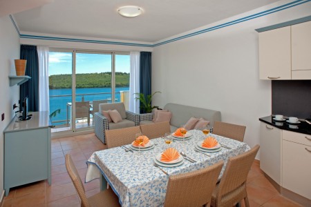 Das moderne Aparthotel liegt im Fischerort Banjole direkt am Meer. Die Anlage besteht aus dem Hauptgebäude (Appartements Typ A, D, E) und und der ca. 150 m entfernten Residence Superior (Appartements Typ F & G).