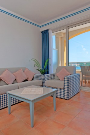 Appartement Typ F für 4-6 Personen: ca. 65 m², ein Schlafzimmer mit Doppelbett, ein Schlafzimmer mit zwei Einzelbetten, Wohn-Schlafraum mit Doppel-Schlafcouch, Küchenzeile, Essecke, Klimaanlage, SAT-TV, Safe, WiFi-Internet (kostenlos), zwei Duschen/WC (Massagedusche), Balkon mit Meerblick.