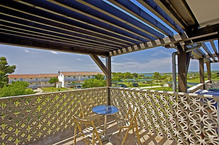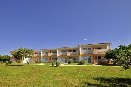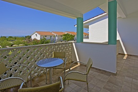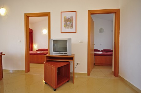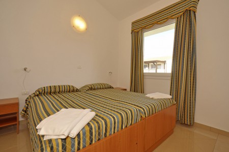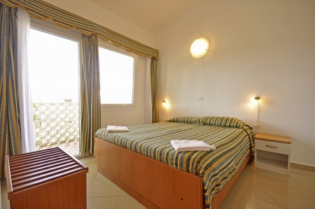 Appartement für 4-5 Personen: ca. 45 m², SAT-TV, Klimaanlage, zwei Doppelzimmer, Wohn-Schlafraum mit Schlafsofa, Küchenzeile und Essecke, Dusche/WC, Balkon oder Terrasse.