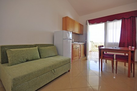 Appartement für 2-3 Personen: ca. 28 m², SAT-TV, Klimaanlage, ein Dreibettzimmer, Wohnküche, Dusche/WC, Balkon oder Terrasse.