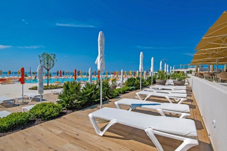 Einrichtungen: Rezeption, mehrere Restaurants und Cafébars, Fast-Food und Pizzeria, Supermarkt, Zeitungs- und Souvenirkiosk, Strandshop, Business-Corner, Kinderspielplatz, Kids und Teens Club, unterhaltsame Animationsprogramme für Kinder und Erwachsene (saisonabhängig). Ein zentraler Aktivitäten-Pool (Süßwasser), ein Kinderbereich mit insgesamt 600 m² Wasserfläche sowie ein 400 m² großer Infinity-Pool (Süßwasser) mit Sonnenterrassen, Liegestuhl- und Sonnenschirmverleih (begrenzte Anzahl, gegen Gebühr) und Poolbars stehen den Gästen der Anlage zur Verfügung. Die Anlage verfügt auch über Ladestationen für Elektroautos (begrenzte Anzahl, gegen Gebühr). Kostenlose Parkplätze in der Anlage verfügbar.