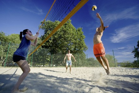 Sport: 8 Sand-Tennisplätze, Tischtennis, Beach-Volley, Minigolf gegen Gebühr. Weitere Sportangebote in der Nähe – Handball, Basketball, Fahrradverleih, Tret-, Paddel-, Ruder- und Motorboote.