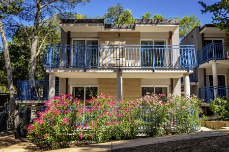 Die Appartementanlage liegt auf einer Halbinsel inmitten üppiger Vegetation und besteht aus insgesamt 174 Appartements in zweistöckigen Reihenhäuschen mit je acht bis zwölf Wohneinheiten.