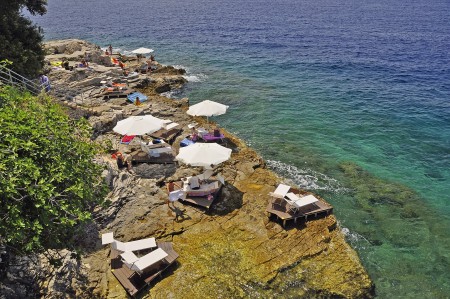 Strand: Die Entfernung zum Felsstrand mit Liegewiesen und Steinflächen beträgt je nach Unterbringung 50 bis 150 m.
