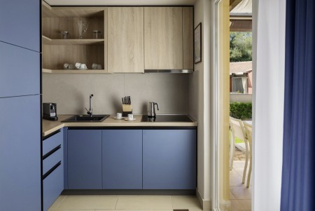 Superior Villa für 2-4 Personen: ca. 43 m², Klimaanlage, Smart-TV, Telefon, WiFi-Internet (kostenlos), Safe, ein Schlafzimmer mit Doppelbett, Wohnraum mit Schlafcouch (140 x 180 cm), Küchenzeile mit Kühlschrank mit Gefrierfach, Spülmaschine, Mikrowelle, Induktionskochfeld, Toaster und Wasserkocher, Weinschrank, Minibar und Cocktailbar, Essbereich, Dusche/WC, möblierte Terrasse (ca. 17 m²) mit Gasgrill und Vorhängen. Babybett auf Anfrage kostenfrei möglich.
