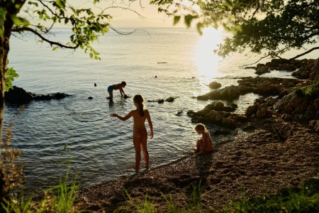 Strand: zum Strand Haludovo mit Felsen, Kies und betonierten Liegeflächen sind es ca 200 m. Sonnenschirme und Liegen gegen Gebühr.