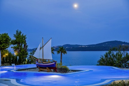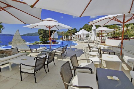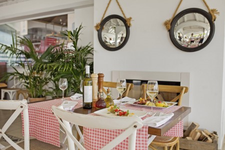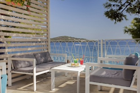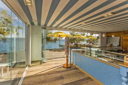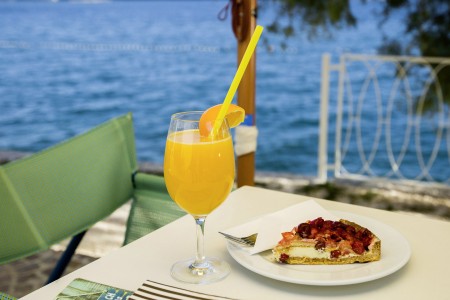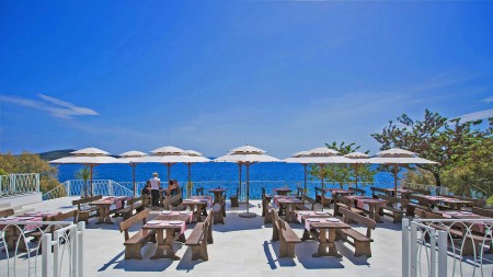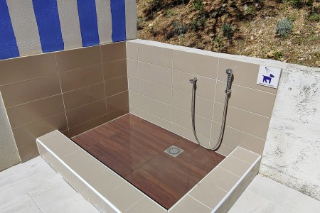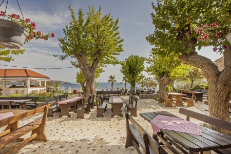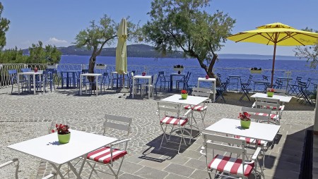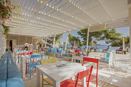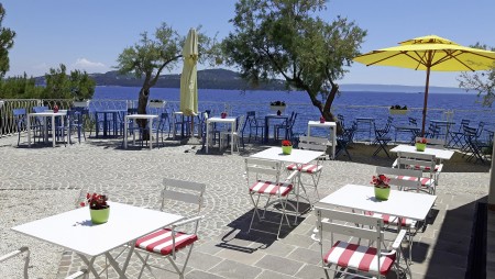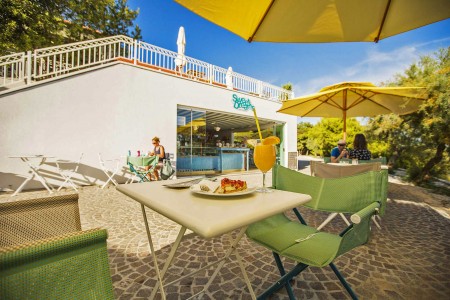 Strand: Zum Kies- und Felsstrand mit Liegeflächen, zwei Strandbars, Konditorei, zwei Restaurants, Fast Food Truck, Duschen, Umkleidekabinen, Sonnenschirm- und Liegestuhlverleih sind es je nach Unterbringung ca. 50-200 m über Stufen und Wege.