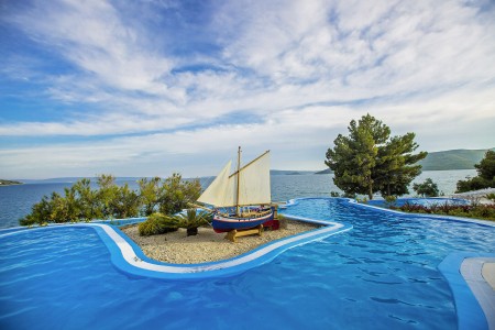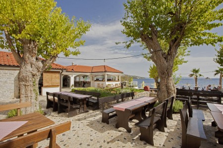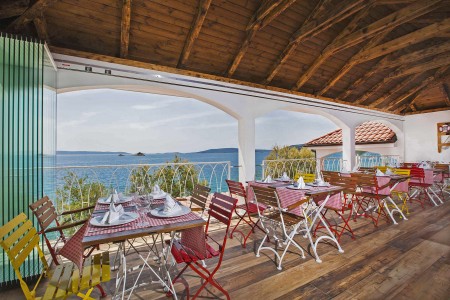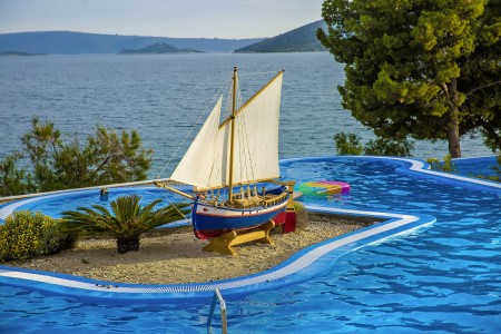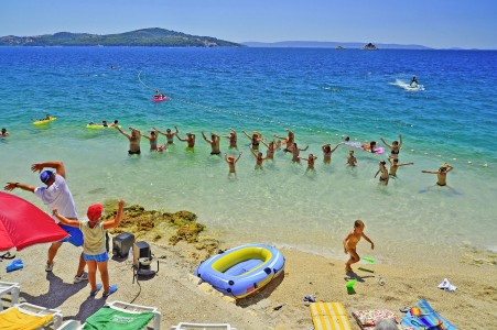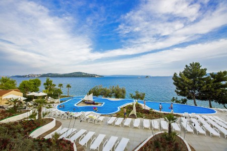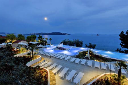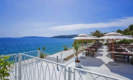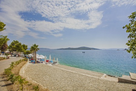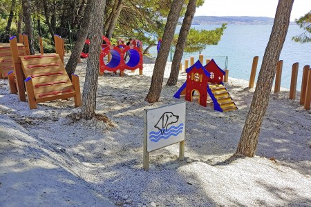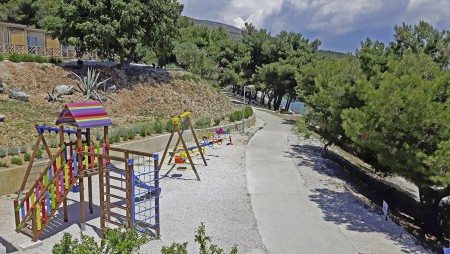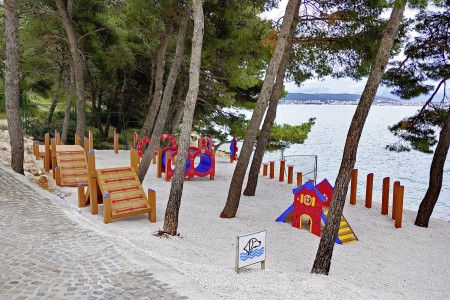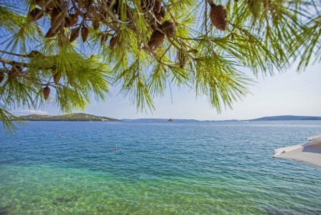 Die Ferienanlage mit insgesamt 66 zweckmäßig eingerichteten Appartements liegt zusammen mit einem Campingplatz an einem leichten Hang im kleinen Badeort Seget-Vranjica, ca. 5 km von der malerischen Altstadt von Trogir entfernt. In der Hochsaison gibt es eine regelmäßige Taxiboot-Verbindung zur Altstadt.
