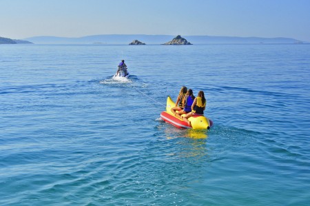 Sport: 2 Tennisplätze, Tischtennis, Fahrradverleih, Aquapark im Meer, verschiedene Wassersportmöglichkeiten.
