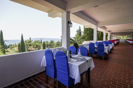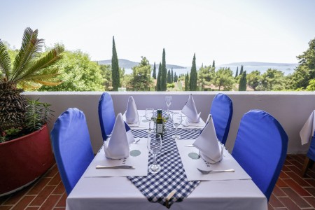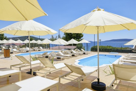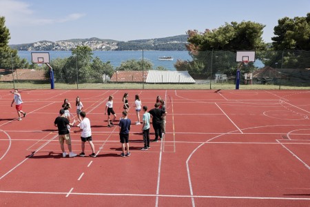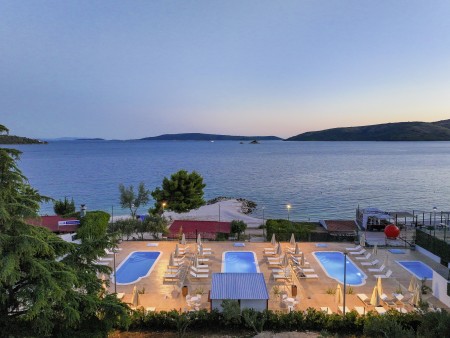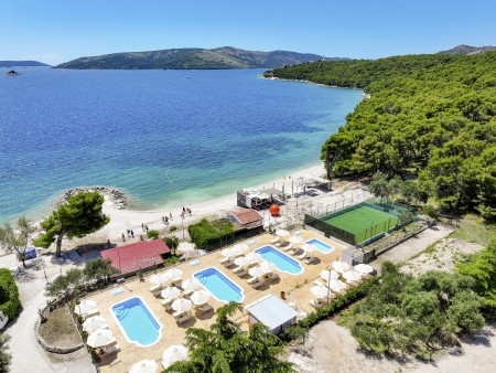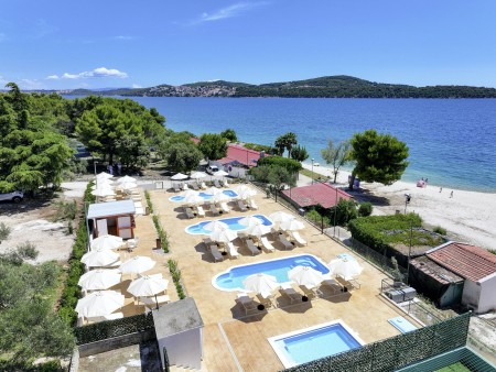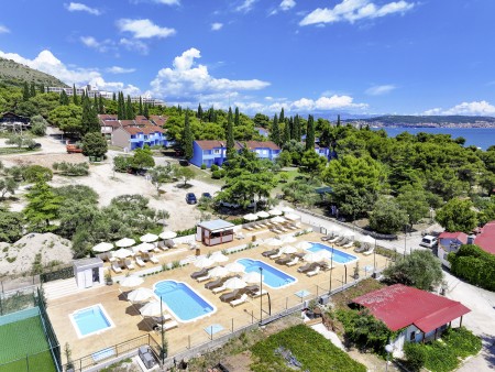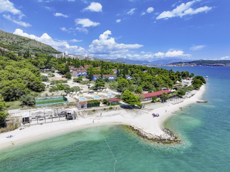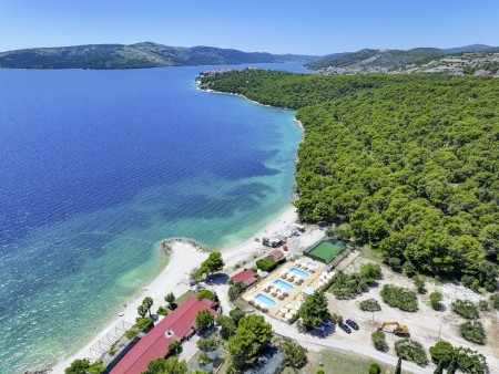 Die Appartementanlage mit insgesamt 205 Wohneinheiten befindet sich in einem Kiefernwald und bietet viel Platz für Sport und Erholung in der Natur. Sie grenzt direkt an die Strandpromenade an, die bis ins Zentrum des alten Fischerdorfs Seget führt. Trogir ist ca. 4 km entfernt.