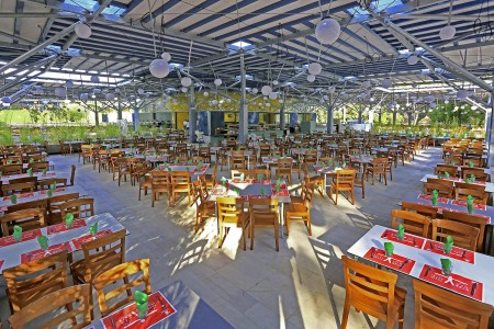 Einrichtungen: Rezeption, Safe an der Rezeption (gegen Gebühr), Buffet-Restaurant mit überdachter Terrasse, Bar mit SAT-TV, Beachbar, Amphitheater, Souvenirgeschäft, Miniclub für Kinder, Abendanimation für Kinder und Erwachsene mit Shows und Minidisco, Massagen, kostenlose Parklätze am Rande der Anlage. Mehrere WiFi-Internet-Spots im Resort verfügbar (kostenlos), Internet-Corner verfügbar (kostenlos). Da die Bungalows nicht an die Strom- und Wasserversorgung angeschlossen sind, stehen Ihnen innerhalb des Resorts moderne Sanitärbereiche zur Verfügung. Diese sind auf acht Blocks aufgeteilt und bieten Waschbecken, Toiletten und Duschen mit warmem Wasser.