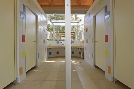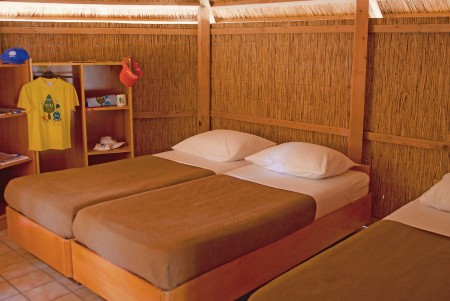 Bungalow/Hütte für 3-5 Personen: ca. 24 m², ein Schlafraum mit zwei Einzelbetten und durch Trennwand abgegrenzter Schlafraum mit drei Einzelbetten. Kinderbett auf Anfrage, gegen Gebühr.