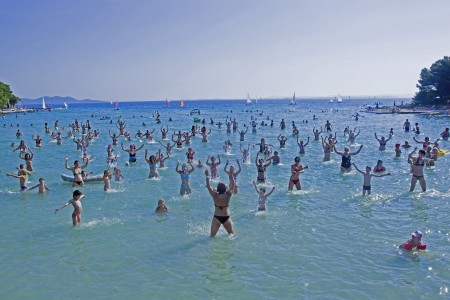 Sport – inklusive: Segeln, Kajaks, Windsurfen, Tennis, Tischtennis, Basketball, Mini-Fußball, Beach-Volley, Aerobic, Yoga, Pilates, Wasserpark, Wasserball, Badminton, Bogenschießen, Boccia, Mini-Fitnessraum, Minigolf, Kletterwand/Adventure Park (vorherige Anmeldung erforderlich).