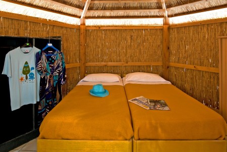 Bungalow/Hütte für 2 Personen: ca. 8 m², zwei Einzelbetten. Kinderbett auf Anfrage, gegen Gebühr.