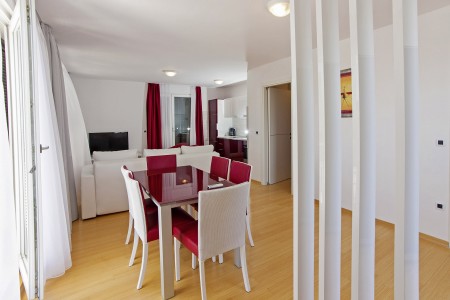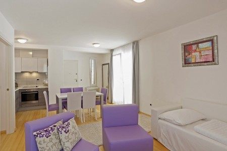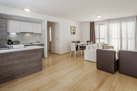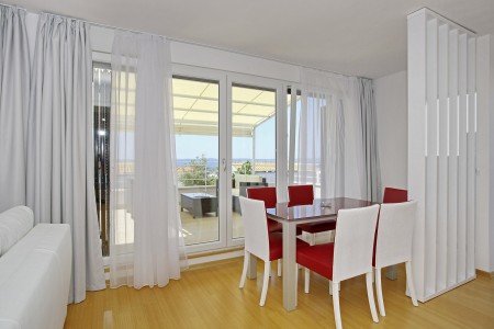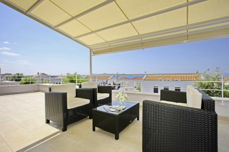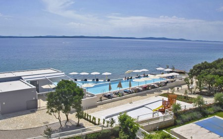 Die moderne, exklusive Ferienanlage mit insgesamt 128 Appartements liegt in Punta Skala, rund einen Kilometer nördlich des malerischen Fischerdorfes Petrčane. Der gepflegte Fels- und Kiesstrand und die Poollandschaft befinden sich direkt vor der Appartementanlage. Die geräumigen Appartements überzeugen durch ihr offenes Raumkonzept und die moderne, geschmackvolle Einrichtung.