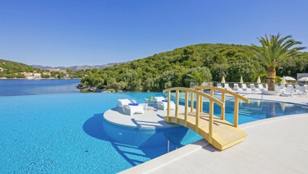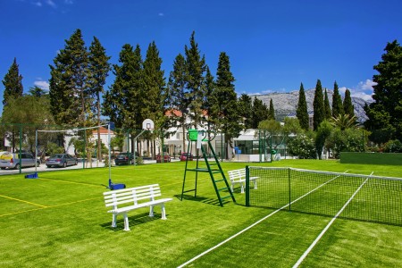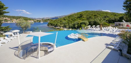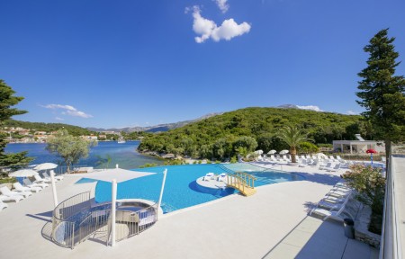 In einer ruhigen Bucht direkt am Kiesstrand gelegen, befindet sich die Ferienanlage bestehend aus einem Hotel und 92 Appartements. Die Appartements sind auf 23 Häuser mit jeweils vier Wohneinheiten aufgeteilt. Unter dem Namen „Aminess Port9 Residence“ erwarten Sie komfortable und modern eingerichtete 4-Sterne-Appartements in grüner mediterraner Umgebung. Mehrere Pools, ein neu angelegter Strand, zahlreiche Sport- und Animationseinrichtungen befinden sich innerhalb des Resorts. Die ca. 2 km entfernte Altstadt von Korčula erreichen Sie über die Küstenpromenade oder ganz bequem mit dem Taxi-Boot.