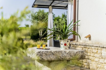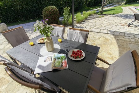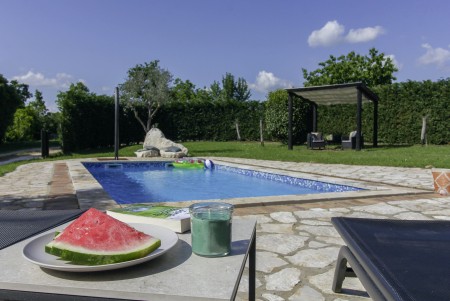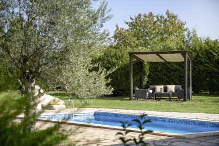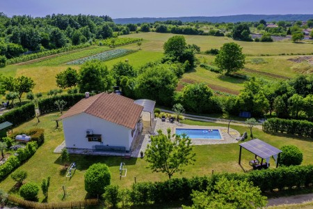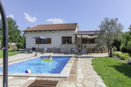 Das freistehende Haus liegt auf einem 2000 m² großen Grundstück mitten im Grünen, so dass man hier nicht nur seine Kinder ohne Einschränkung im Garten toben lassen, sondern auch herrlich entspannen und die Ruhe genießen kann. In ländlichem Ambiente gelegen, umgeben von unberührter Natur, ist das Haus mit allen Annehmlichkeiten versehen, die man sich für einen erholsamen und gelungenen Urlaub mit der Familie wünscht. Ob draußen im Garten am Swimmingpool (7,5 x 3,5 m) oder in den farbenfroh und freundlich gestalteten Räumen des Hauses, hier muss man sich einfach wohl fühlen. Für die kleinen Gäste gibt es einen schönen Spielplatz hinter dem Haus.