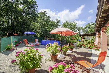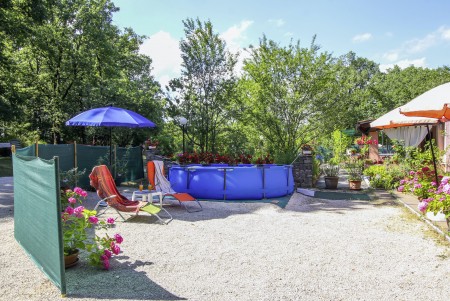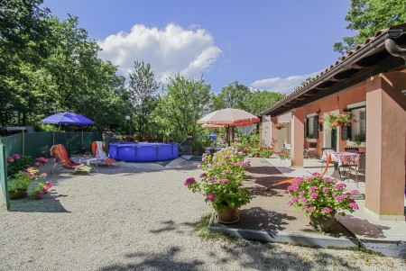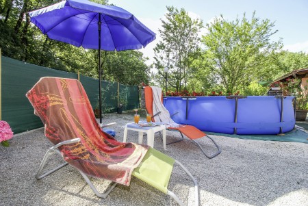Das Häuschen liegt auf einem über 2000 m² großen gepflegten Anwesen, auf dem sich auch das Haus der Gastgeber und ein weiteres kleines Ferienhaus für 2-3 Personen befinden. Umgeben von einem parkähnlichen, grün bepflanzten Garten mit Schatten spendenden Bäumen, werden Sie hier schnell Ihren Lieblingsplatz finden. Sei es in der gemütlichen Hängematte, auf der schönen überdachten Terrasse Ihres Häuschens oder am großen Außengrill mit Tischen und Bänken. Darüber hinaus steht Ihnen ein Aufstellpool (Durchmesser 3,66 m, Tiefe 0,76 m) zur Verfügung, der eine angenehme Erfrischung an warmen Sommertagen bietet. Wer die hügelige Landschaft Istriens gerne zu Fuß erkunden möchte ist hier bestens aufgehoben, denn in der Nähe gibt es einige interessante Wanderwege.