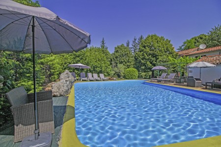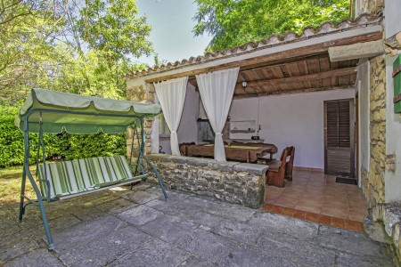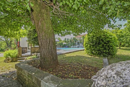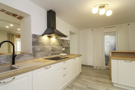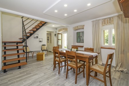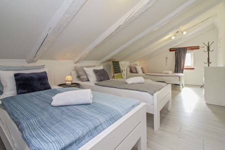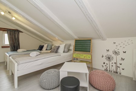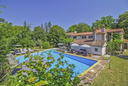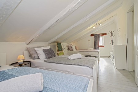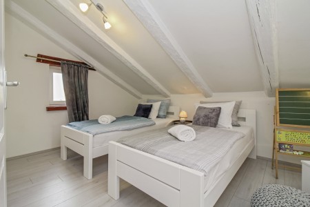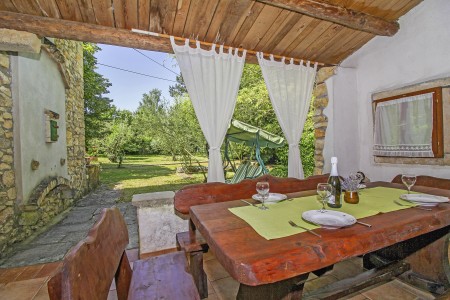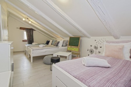 Das 250 Jahre alte Anwesen liegt auf einem großen Areal am Ende des Dorfes Kraj Drage. In diesem typisch ländlichen Ambiente befindet sich das Haus, welches aus drei Teilen besteht. Während der erste Teil des Hauses an Feriengäste vermietet wird, werden die beiden anderen Teile von den Vermietern selbst genutzt. Zur Saison 2021 wurde das Interieur des Ferienhauses komplett renoviert und neu eingerichtet. Das Grundstück verfügt über einen großen privaten Swimmingpool (12 x 8 m) mit Sonnenliegen und eine große Spielwiese mit Badminton-Netz.