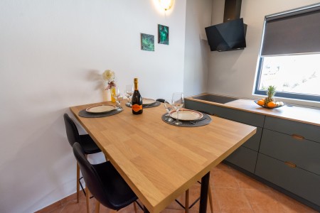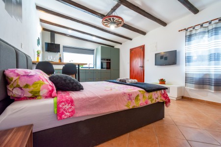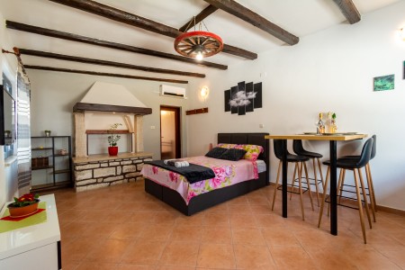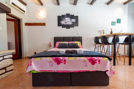 Das gepflegte, liebevoll eingerichtete Ferienhaus liegt im Dorf Muntić. Die bekannte Küstenstadt Pula mit zahlreichen Sehenswürdigkeiten, Restaurants, Ausgeh- und Einkaufsmöglichkeiten ist nur 10 km entfernt. Das bekannteste Denkmal und Wahrzeichen der Stadt ist die beindruckende Arena, ein Amphitheater aus der Römerzeit, das nicht nur besichtigt werden kann, sondern auch als einmalige Freiluftbühne für Konzerte und Filmveranstaltungen dient. Nach einem erlebnisreichen Tag lässt es sich herrlich im Garten des Hauses am Pool (6,5 x 3 m) oder auf der Terrasse entspannen. Eine Einkaufsmöglichkeit befindet sich in fußläufiger Entfernung, alles Weitere für den täglich Bedarf finden Sie in Pula.