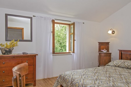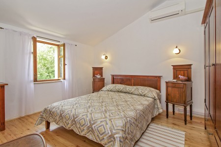 Haus für 2-4 Personen: ca. 70 m² auf zwei Etagen. Das Erdgeschoss verfügt über einen Wohnraum mit Küche, Essbereich, Schlafcouch (180 x 200 cm) und Klimaanlage, außerdem ein Badezimmer mit Dusche und WC. In der ersten Etage befindet sich ein geräumiges Schlafzimmer (17 m²) mit Doppelbett (140 x 200 cm) und Klimaanlage. Ein Zustellbett für ein Kind ist auf Anfrage verfügbar und kann wahlweise im Wohnraum oder im Schlafzimmer aufgestellt werden.