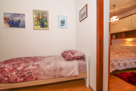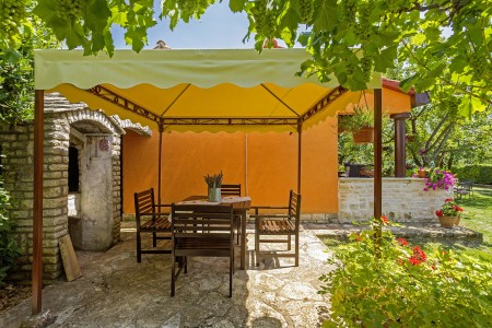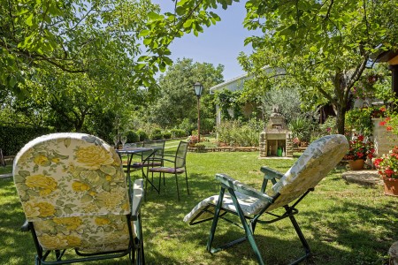 Das gemütliche freistehende Haus liegt am Rande des Dorfes Smoljanci, auf einem großen Grundstück, auf dem sich auch das Haus der Vermieterfamilie befindet. Im gepflegten eingezäunten Garten mit Rasen, Blumen, Obstbäumen und Grillkamin können Ihre Kinder ausgelassen spielen – und auch Ihr Auto findet hier sein schattiges Plätzchen. Alles in allem eine richtig dörfliche und urige Atmosphäre.