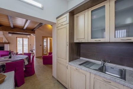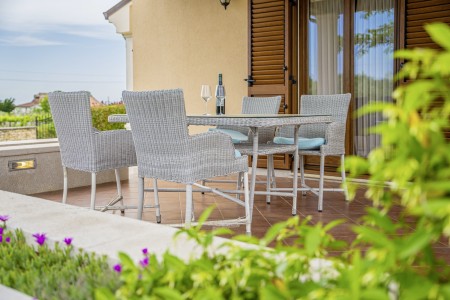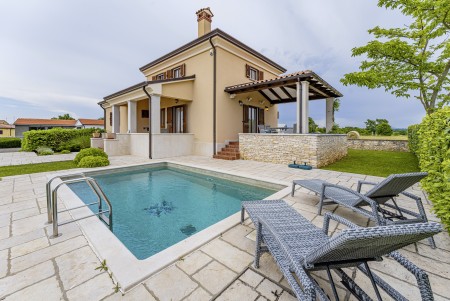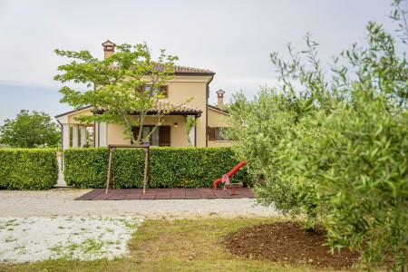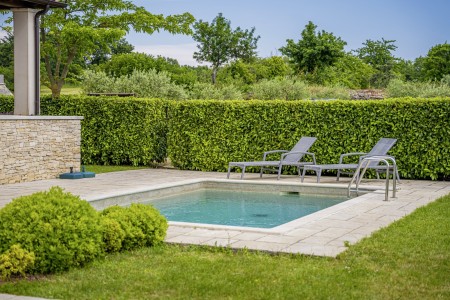 Das außerhalb des Städtchens Kanfanar neu erbaute Haus verbindet in gelungener Weise modernen Baustil mit traditionellen istrianischen Elementen. Es ist nicht nur idealer Ausgangspunkt für Ausflüge in alle Richtungen auf der Halbinsel Istrien, sondern es ist auch selbst eine komfortable Oase der Ruhe. Der große, von einer Steinmauer umrahmte Garten mit Swimmingpool und Sonnenterrasse bietet sowohl Privatsphäre als auch ausreichend Platz zum Spielen und Toben für die Kleinsten, die sich zudem über einen eigenen kleinen Spielplatz mit Rutsche und Schaukel freuen dürfen. Haus und Grundstück stehen Ihnen komplett zur alleinigen Nutzung zur Verfügung.