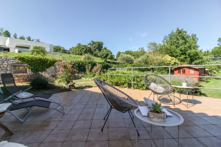Ebenerdiges Häuschen mit 1 Schlafzimmer, Garten und großer Sonnenterrasse mit herrlichem Ausblick