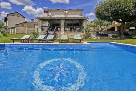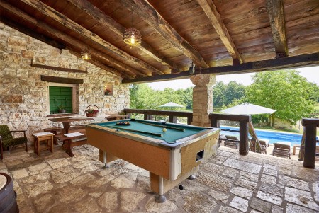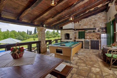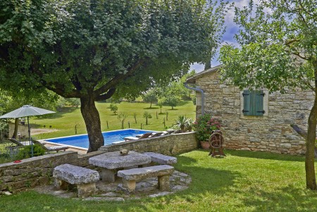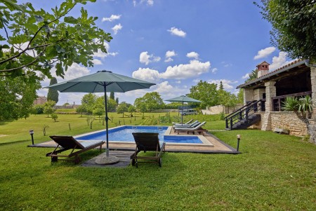 Das freistehende, urige istrianische Häuschen teilt den riesigen Garten mit dem Haus Ihrer Gastgeber, Ihre Privatsphäre wird durch die große Loggia im hinteren Teil des Hauses geschützt. Das große Grundstück bietet die besten Voraussetzungen zum Entspannen, Sonnenbaden und für sportliche Aktivitäten im Freien. Neben einem Sandplatz für Volleyball und einem Badminton-Feld stehen Ihnen Billard und Tischtennis zur Verfügung. Darüber hinaus dürfen Sie sich auf die Vorzüge eines privaten Swimmingpools (8 x 4 m) mit Sonnenliegen und Außendusche freuen. Während Sie hier Ihren privaten Rückzugsort genießen, sind die zahlreichen Strände von Poreč und die lebhafte Altstadt in nur 15 Autominuten zu erreichen. Restaurant und Einkaufsmöglichkeit befinden sich in fußläufiger Entfernung.