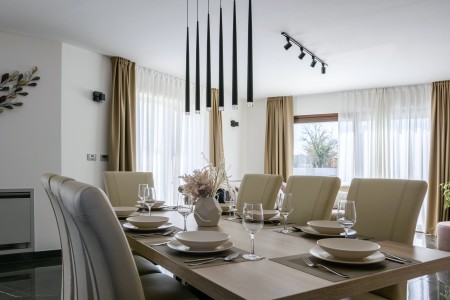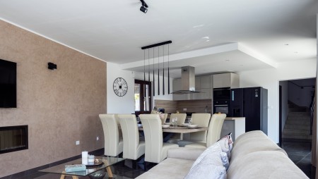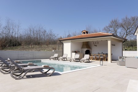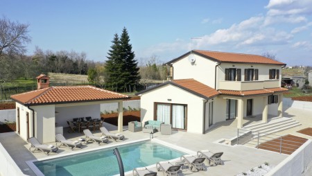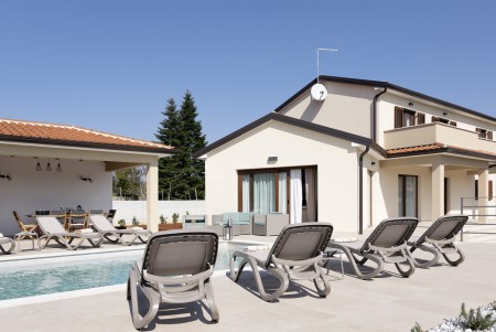 Die neue, modern eingerichtete Ferienvilla liegt in Vižinada, einem ruhigen Vorort von Poreč, nur 17 km vom nächsten Strand entfernt. Neben zahlreichen herrlichen Badestränden bietet Poreč seinen Besuchern eine bezaubernde Altstadt mit einem bunten Angebot an Einkaufs- und Unterhaltungsmöglichkeiten, viele kulturhistorische Sehenswürdigkeiten und unzählige Möglichkeiten für sportliche Aktivitäten im Freien. Am schönsten lässt sich die Umgebung von Vižinada zu Fuß oder mit dem Fahrrad entdecken. Eine Besonderheit ist die Fahrradroute, die entlang der historischen Eisenbahnstrecke „Parenzana“ von Vižinada über Motovun bis nach Umag im Norden der Halbinsel Istrien führt. Und wer am liebsten nur entspannen und nichts tun möchte ist hier auch bestens aufgehoben, denn es erwartet Sie eine komfortabel eingerichtete Villa mit vier Schlafzimmern und ein gepflegter, komplett eingezäunter Außenbereich mit Freisitz, Grill, Sonnenterrasse und privatem Pool (4 x 8 m).