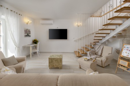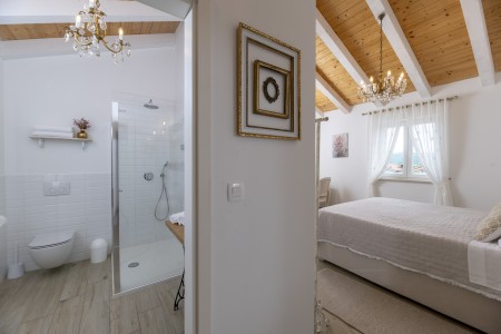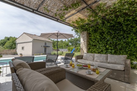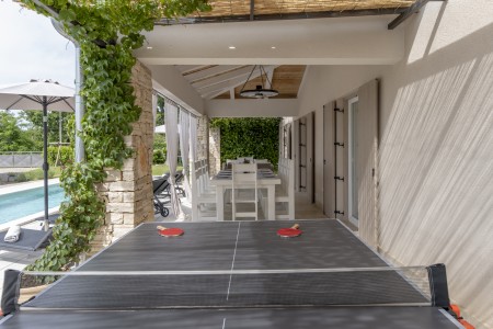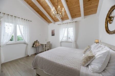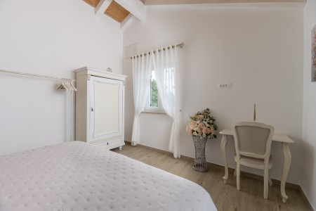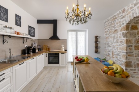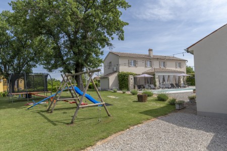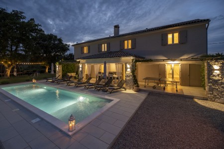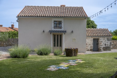 In ruhiger Lage, im kleinen Dorf Sveti Bartul, nur 5 Autominuten vom historischen Hügelstädtchen Labin entfernt, befindet sich die komfortable und geräumige Ferienvilla auf einem vollständig eingezäunten Grundstück, das Ihnen komplett zur alleinigen Nutzung zur Verfügung steht. Umgeben von viel Grün und einer einmalig schönen Natur mit weitläufigen Wäldern und Feldern, lässt es sich hier wunderbar entspannen. Die Villa verfügt über einen großen, eingezäunten Garten, sodass Ruhe und Privatsphäre garantiert sind. Freuen Sie sich auf einen privaten Swimmingpool (4 x 9 m) mit Sonnenterrasse, zwei Sonnenschirmen, Außendusche und bequemen Sonnenliegen sowie eine Spielwiese für Kinder und einen Essbereich im Freien. Das Interieur ist modern eingerichtet und bietet mit insgesamt vier Schlafzimmern ein hohes Niveau an Komfort. Dank der großzügigen Raumaufteilung und der familienfreundlichen Ausstattung ist das Haus ideal für einen Urlaub mit Kindern. Die Umgebung eignet sich ideal für ausgedehnte Radtouren und Wanderungen durch die immergrüne Natur, und wer den Berg Učka erklimmt, wird mit einem herrlichen Ausblick belohnt. Und auch für einen Badeurlaub sind Sie hier bestens aufgehoben, denn die bekannten Strände in Rabac ca. 8 km vom Haus entfernt sind. Die lebhaften Städte an der Westküste von Istrien, wie Poreč, Rovinj und Vrsar mit ihren zahlreichen Stränden, Unterhaltungs- und Einkaufsmöglichkeiten sind mit dem Auto gut zu erreichen. Restaurants und Einkaufsmöglichkeiten befinden sich in Labin (2,5 km).