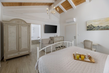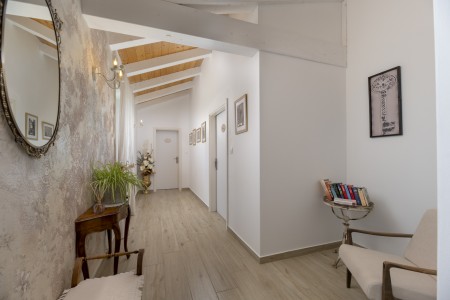 Haus für 8-10 Personen: ca. 200 m², auf zwei Etagen. Im Erdgeschoss befinden sich eine moderne, komplett ausgestattete Küche mit Ausgang auf die große Terrasse (30 m²) sowie ein komfortables Wohn-/Esszimmer mit bequemer Couchgarnitur, Klimaanlage, Smart-TV und Ausgang auf die Terrasse. Außerdem gibt es im Erdgeschoss ein Schlafzimmer mit Doppelbett, Klimaanlage, Badezimmer mit Dusche und WC und Ausgang auf die Terrasse. Zusätzlich steht ein separates WC zur Verfügung. In der ersten Etage befindet sich ein Schlafzimmer mit Doppelbett, einem ausziehbaren Sessel (90 x 200 cm) für eine Person, einem Smart-TV sowie eigenem Badezimmer mit Badewanne und WC. Ein weiteres Schlafzimmer verfügt ebenfalls über ein Doppelbett, einen ausziehbaren Sessel (90 x 200 cm) für eine Person und ein Badezimmer mit Dusche und WC. Ein drittes Schlafzimmer bietet ein Doppelbett und ein optisch abgeteiltes Badezimmer mit Dusche und WC. Alle Schlafzimmer sind klimatisiert. Darüber hinaus bietet das Poolhaus (46 m²) eine zusätzliche Annehmlichkeit: hier befindet sich eine weitere Küche mit Kamin, Waschbecken, Herd, Backofen, Kühlschrank und rustikalem Essbereich mit Smart-TV, sowie ein Badezimmer mit Dusche und WC. Außerdem ein Dachboden mit Gesellschaftsspielen wie Billardtisch, Dartscheibe und Tischfußball. Der Raum ist klimatisiert.