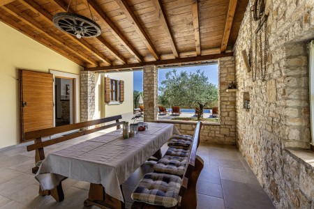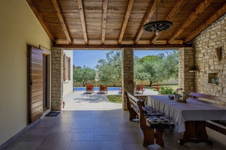 Ein wunderschönes, freistehendes Haus, das sich im Dorf Kavran, auf der Ostseite der Halbinsel Istrien befindet. Ob Sie lieber auf dem 850 m² großen Grundstück entspannen oder die in der Nähe liegenden Strände genießen möchten, für einen erholsamen Urlaub mit Familie oder Freunden ist hier einfach alles geboten. Der Swimmingpool (8 x 4 m) mit Sonnenterasse und Liegestühlen rundet das Angebot ab. Liebhaber von sportlichen Aktivitäten und Abenteuer, kommen im nahe gelegenen Adrenalinpark Glavani auf ihre Kosten. Außerdem gibt es in der Nähe auch einen Park zum Quad fahren.