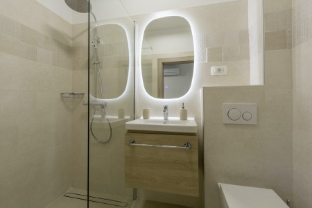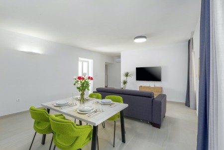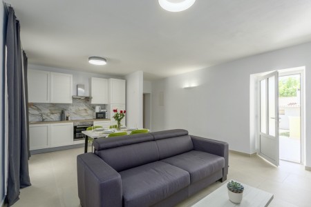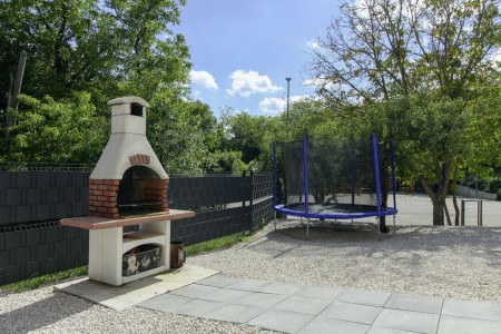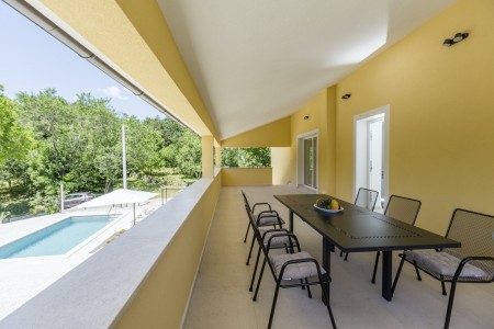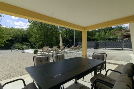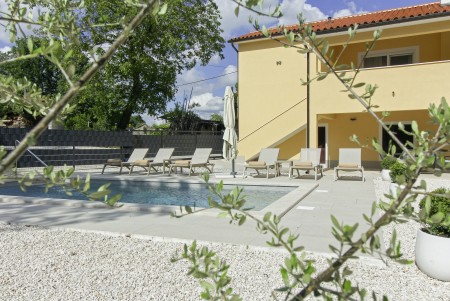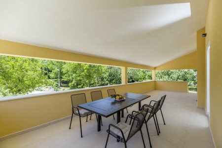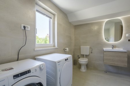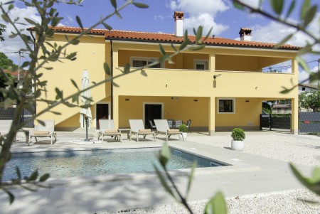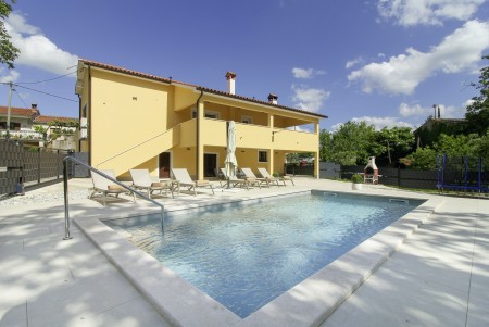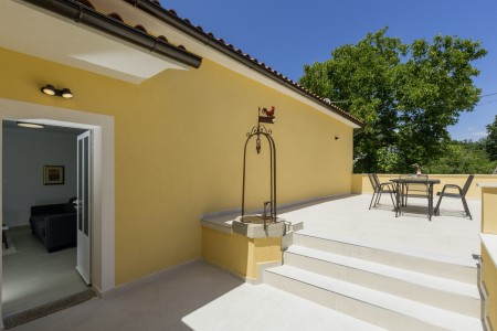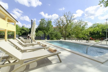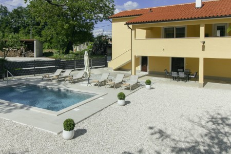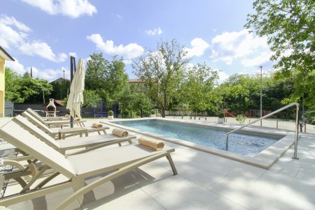 Das freistehende Haus liegt etwas außerhalb von Sveta Katarina, einem kleinen Dorf, das zur Gemeinde Pičan gehört. Die Umgebung ist bekannt für ihre einmalig schöne Landschaft mit weitläufigen Feldern, Wiesen und Wäldern, in der es sich wunderbar entspannen und zugleich aktiv sein lässt. Neben einem privaten Swimmingpool (4 x 7 m) mit Sonnenterrasse und Liegestühlen bietet der Außenbereich einen Grillkamin und eine überdachte Terrasse. Die Umgebung eignet sich ideal für ausgedehnte Radtouren und Wanderungen durch die immergrüne Landschaft, und wer den Berg Učka erklimmt, wird mit einem atemberaubenden Ausblick belohnt. Und auch für einen Badeurlaub sind Sie hier bestens aufgehoben, denn der Strand „Copacabana“, unterhalb des historischen Städtchens Plomin gelegen, ist nur 24 km entfernt und mit dem Auto schnell erreichbar. Die beste Pizzeria der Gegend finden Sie in der sehenswerten Altstadt der Hügelstadt Labin (ca. 20 km).