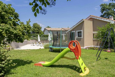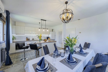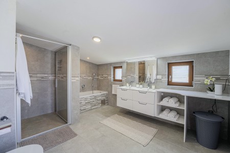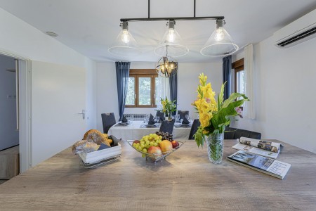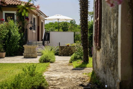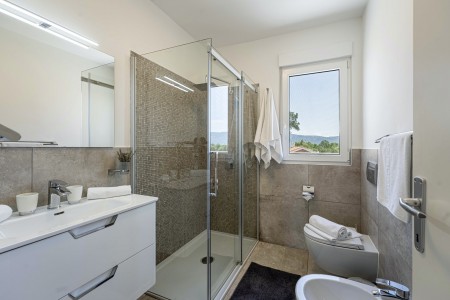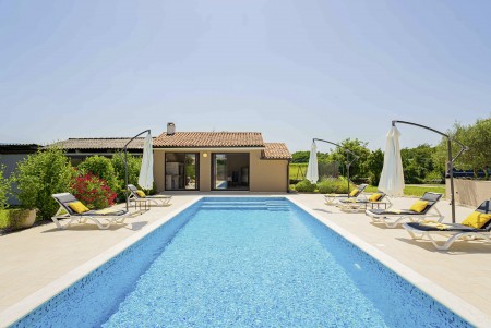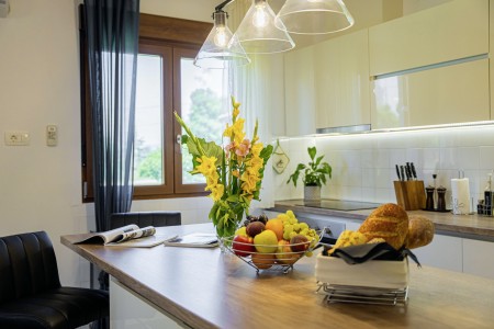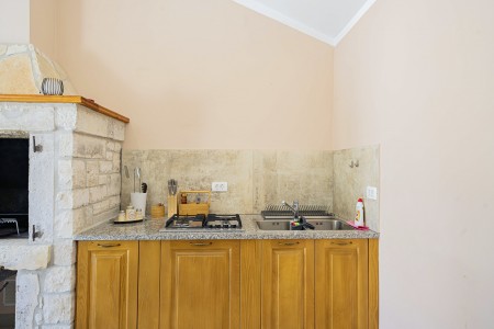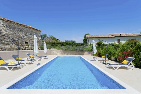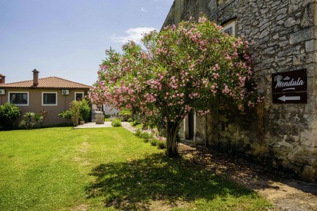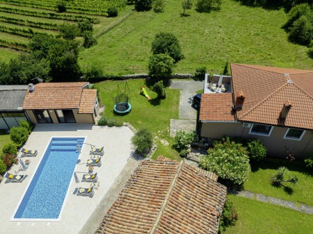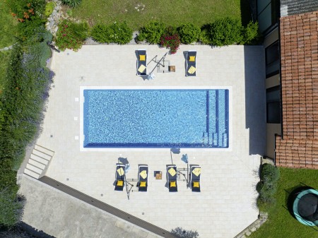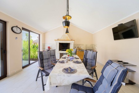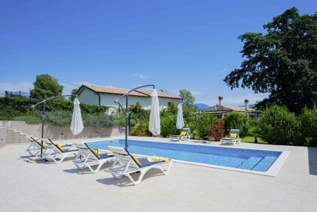Das freistehende Haus mit dem schönen Namen Villa Mendula liegt in Čambarelići, einem kleinen und ruhigen Dorf, das zur Gemeinde Kršan gehört. Die Umgebung ist bekannt für ihre einmalig schöne Landschaft mit weitläufigen Feldern, Wiesen, Weingärten und Wäldern, in der es sich wunderbar entspannen und zugleich aktiv sein lässt. Neben einem privaten Swimmingpool (4 x 10 m) mit Sonnenterrasse, Liegestühlen und Sonnenschirmen bietet der Außenbereich als Highlight ein Poolhaus mit einer komplett ausgestatteten Sommerküche inklusive Grillkamin, Essbereich und TV, sowie großen Schiebetüren, die zum Pool hin geöffnet werden können. Die Umgebung eignet sich ideal für ausgedehnte Radtouren und Wanderungen durch die immergrüne Landschaft, und wer den Berg Učka erklimmt, wird mit einem atemberaubenden Ausblick belohnt. Und auch für einen Badeurlaub sind Sie hier bestens aufgehoben, denn der Strand „Copacabana“, unterhalb des historischen Städtchens Plomin gelegen, ist nur 10 km entfernt und mit dem Auto schnell erreichbar. Die bekannteren Strände in Rabac sind ca. 20 km entfernt. Die beste Pizzeria der Gegend finden Sie in der sehenswerten Altstadt der Hügelstadt Plomin (ca. 10 km). Die nächste Einkaufsmöglichkeit ist nur 1,5 km vom Haus entfernt.