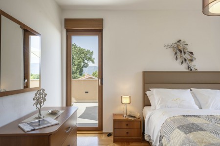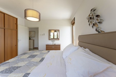 Haus für 6-7 Personen: ca. 143 m² in der ersten Etage. Das Haus bietet eine moderne, komplett ausgestattete Küche mit Kücheninsel, Klimaanlage und Essbereich, sowie ein separates Wohnzimmer mit Schlafcouch (120 x 190 cm) für eine Person, Klimaanlage und direktem Zugang auf die große Terrasse mit Tisch und Stühlen. Des Weiteren ein Schlafzimmer mit Etagenbett und Klimaanlage, ein Badezimmer mit Dusche und WC, ein Schlafzimmer mit Doppelbett, Klimaanlage und Terrasse mit herrlichem Ausblick auf die Landschaft, sowie ein Schlafzimmer mit Doppelbett, Klimaanlage und einem sehr geräumigen Badezimmer mit Walk-in-Dusche, Badewanne, zwei Waschbecken und WC. Das Erdgeschoss des Hauses wird weder vermietet, noch bewohnt.