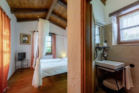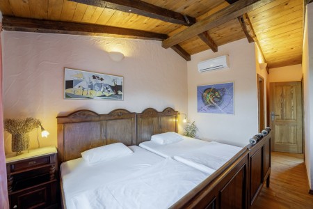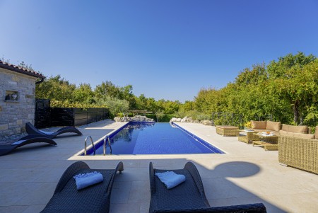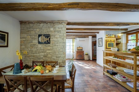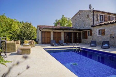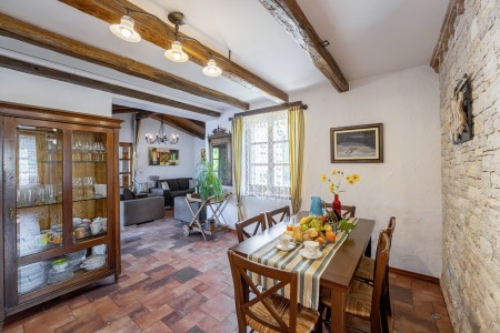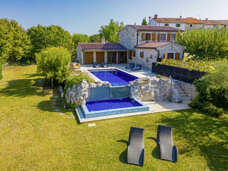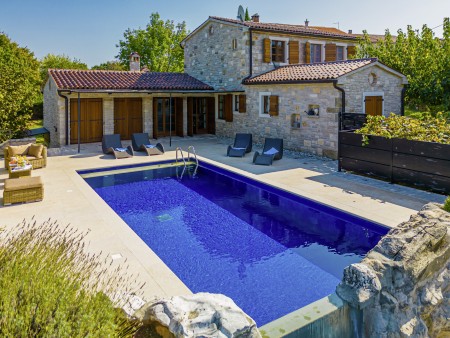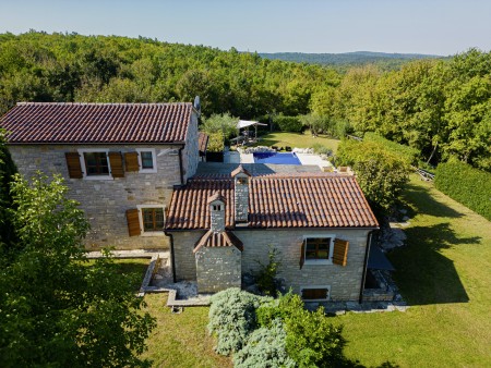 Die komfortable Steinvilla mit drei Schlafzimmern und drei Badezimmern liegt in Kuberton, einem kleinen Dorf, das zur Gemeinde Grožnjan gehört. Von einer einmalig schönen Landschaft umgeben, bietet die Villa mit ihrem nicht einsehbaren Garten (1200 m²) und privatem Pool (9 x 4 m) eine Oase der Ruhe abseits der Touristenströme, während die lebhaften Städtchen, wie Novigrad und Poreč an der Küste mit ihren zahlreichen Stränden in ca. 20-30 Autominuten erreichbar sind. Eine Einkaufsmöglichkeit sowie ein Restaurant finden Sie im ca. 5 km entfernten Ort Marušići. Das pittoreske Hügelstädtchen Grožnjan mit zahlreichen Sehenswürdigkeiten ist ca. 8 km entfernt. Viele Musiker und Maler aus ganz Europa kennen Grožnjan, denn hier werden Musikkurse veranstaltet und es finden regelmäßig Konzerte statt. Hier finden Sie auch 20 Galerien bekannter Künstler und eine Schule für Keramik.
