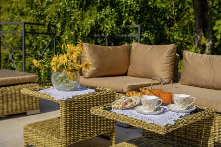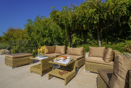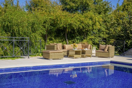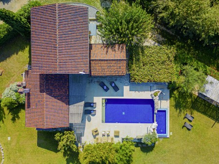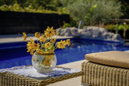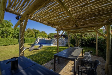 Sonstiges: WiFi-Internet verfügbar (kostenlos). Kostenloser Privatparkplatz auf dem Grundstück. Bequeme Sonnenliegen und begrünte Pergola mit Lounge-Bereich am Pool. Außendusche im Garten. Eine Besonderheit ist, dass der Pool über eine Kaskade in ein kleineres Becken (2 x 4 m) im Garten überläuft, das ideal für Kinder und zum Planschen geeignet ist.