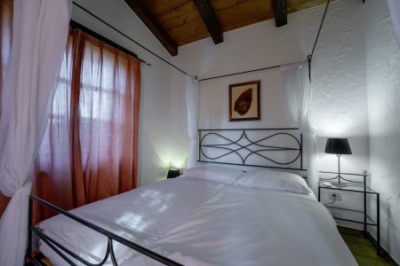 Haus für 6 Personen: ca. 140 m² auf zwei Etagen, geschmackvoll und komfortabel eingerichtet. Im Erdgeschoss befindet sich eine komplett ausgestattete Küche mit Essbereich und Klimaanlage, ein Wohnzimmer mit bequemer Couchgarnitur, Kamin und Klimaanlage sowie ein weiterer Essbereich, der zum Pool hin geöffnet werden kann. Des Weiteren bietet das Erdgeschoss ein Schlafzimmer mit Doppelbett, Klimaanlage, TV und eigenem Badezimmer mit Dusche und WC, sowie ein separates WC. In der ersten Etage befinden sich ein Schlafzimmer mit Doppelbett und ein Schlafzimmer mit zwei zusammengestellten Einzelbetten. Beide Schlafzimmer sind mit Klimaanlage und TV ausgestattet und verfügen jeweils über ein eigenes Badezimmer mit Dusche und WC.