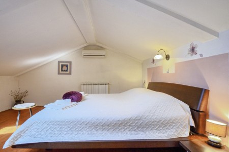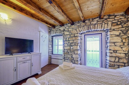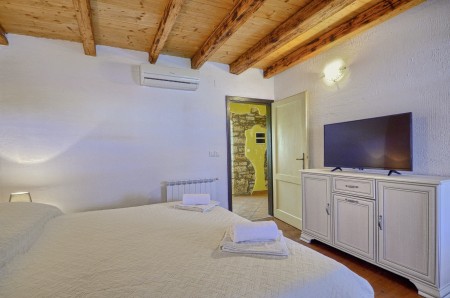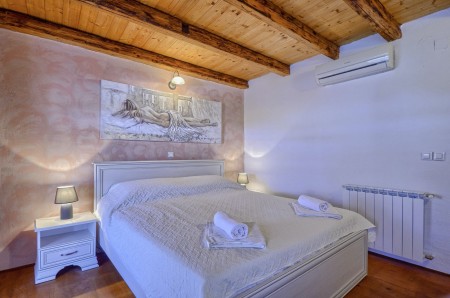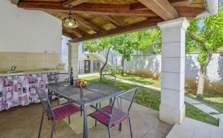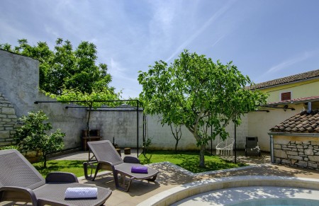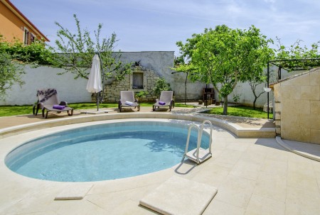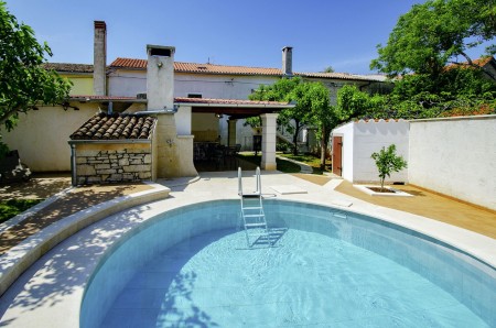 Das gepflegte, liebevoll eingerichtete Ferienhaus liegt in ruhiger Umgebung des Dorfes Muntić. Die bekannte Küstenstadt Pula mit zahlreichen Sehenswürdigkeiten, Restaurants, Ausgeh- und Einkaufsmöglichkeiten ist nur 10 km entfernt. Das bekannteste Denkmal und Wahrzeichen der Stadt ist die beindruckende Arena, ein Amphitheater aus der Römerzeit, das nicht nur besichtigt werden kann, sondern auch als einmalige Freiluftbühne für Konzerte und Filmveranstaltungen dient. Nach einem erlebnisreichen Tag lässt es sich herrlich im geschützten Innenhof des Hauses am runden Pool und auf der Terrasse entspannen. Eine Außenküche mit Grill, Waschbecken, Elektrokocher und Essbereich im Freien rundet das Angebot ab. Eine Einkaufsmöglichkeit befindet sich in fußläufiger Entfernung.