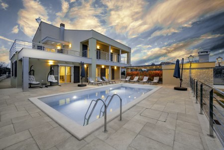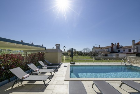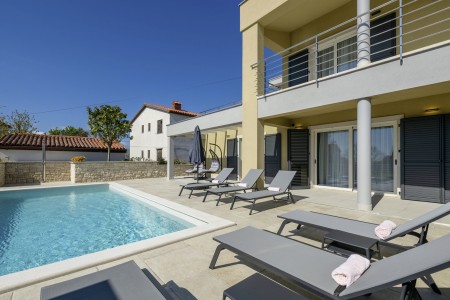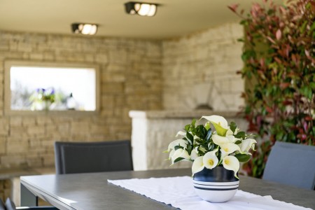 Die freistehende Villa befindet sich in Krnica, einem kleinen Dorf in der Nähe der Ostküste von Istrien. Nur 3 km vom nächsten Strand entfernt, in einer ruhigen grünen Umgebung gelegen ist die Villa Valentina die richtige Wahl für einen erholsamen Urlaub in privater Atmosphäre. Neben einem geschmackvollen und hochwertig eingerichteten Interieur mit vier komfortablen Schlafzimmern erwartet Sie ein gepflegter Außenbereich mit privatem Pool (8 x 4 m), Sonnenterrasse, Liegestühlen, Außenküche mit Grillkamin und Essplatz im Freien. Der kleine Ortskern von Krnica bietet Restaurant und Einkaufsmöglichkeit und ist zu Fuß in wenigen Minuten erreichbar. Neben Entspannung und Erholung finden Sie hier ideale Bedingungen für einen aktiven Urlaub in der belebenden Natur, denn in der näheren Umgebung befinden sich zahlreiche Wanderwege und versteckte Pfade durch die vielseitige Landschaft der Halbinsel Istrien.