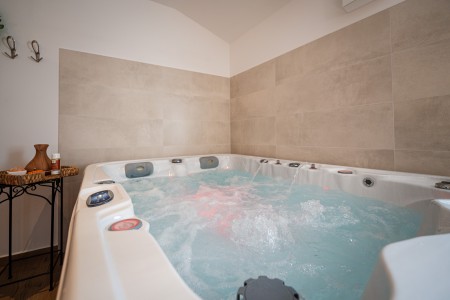 Entdecken Sie den ultimativen Rückzugsort in Sveti Donat, einem kleinen Dorf, das in die atemberaubende Landschaft nahe der historischen Hügelstadt Buzet eingebettet ist. Hier befindet sich ein kleines Ferienhaus für zwei Personen, das sich über zwei Etagen erstreckt und mit eigener Sauna und Whirlpool zum Entspannen und Wohlfühlen einlädt. Nur 7 km entfernt liegt Buzet, wo Sie Einkaufsmöglichkeiten und Restaurants finden. Für ein kulturelles Erlebnis besuchen Sie die 18 km entfernte Stadt Motovun, bekannt für ihre sehenswerte Altstadt, weitere Einkaufsmöglichkeiten, Restaurants und Cafés. Dieses Haus ist der perfekte Ausgangspunkt, um die Schönheit Istriens zu erkunden – von der verträumten Landschaft rund um das Haus bis hin zu den lebhaften Küstenstädten, die mit dem Auto gut zu erreichen sind.