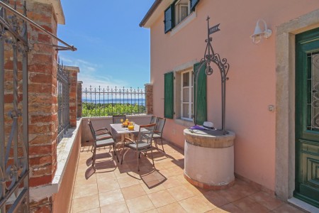 In malerischer Hanglange mit atemberaubendem Blick auf das Meer und die vorgelagerte Insel Cres, erwartet Sie das gemütlich eingerichtete Haus Felix. Das freistehende Ferienhaus liegt in Sveta Marina und ist nur 500 m vom Strand entfernt. Sveta Marina ist ein idyllisch gelegenes Dorf an der Ostküste Istriens und bietet die besten Voraussetzungen für einen erholsamen und zugleich aktiven Urlaub. Neben herrlichen Badebuchten und ausgezeichneten Möglichkeiten zum Schnorcheln und Tauchen, findet man hier eine einmalig schöne Landschaft, die zu ausgedehnten Touren im Grünen einlädt. Restaurant und Einkaufsmöglichkeit befinden sich in fußläufiger Entfernung, während man im 8 km entfernten Labin alles Weitere für den täglichen Bedarf sowie eine sehenswerte Altstadt findet. Sowohl das Haus, als auch der gepflegte, terrassenförmig angelegte Garten mit Oliven, Feigenbäumen und duftendem Rosmarin stehen Ihnen komplett zur alleinigen Nutzung zur Verfügung.