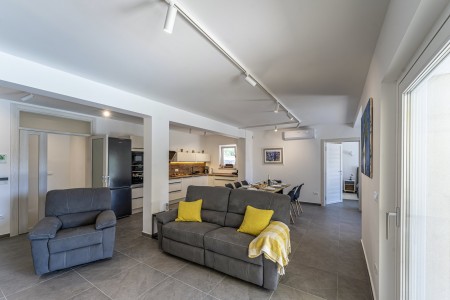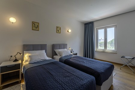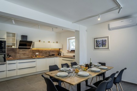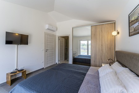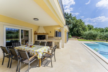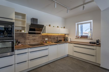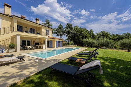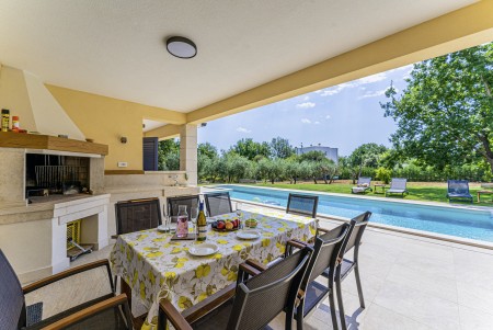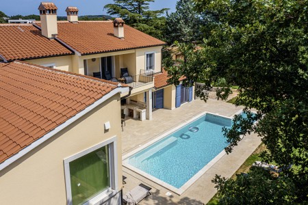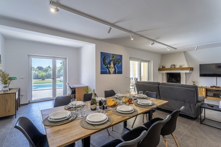 Die neu erbaute, moderne Villa liegt am Rande des kleinen Ortes Ližnjan, nur 800 m vom Strand entfernt. Neben einem komplett neu eingerichteten Interieur mit vier komfortablen Schlafzimmern erwartet Sie ein großer Garten mit beheizbarem Pool (12,5 x 4 m), der Ihnen, wie auch das Haus komplett zur alleinigen Nutzung zur Verfügung steht. Der ideale Ort, um einen erholsamen Urlaub in Ruhe und Privatsphäre zu verbringen, während sich Annehmlichkeiten wie Strand, Restaurant und Einkaufsmöglichkeit in fußläufiger Entfernung befinden. Nur 2 km von Ližnjan entfernt liegt Medulin, ein lebhafter Küstenort, der in den Sommermonaten zahlreiche Unterhaltungsmöglichkeiten und ein buntes Wassersportangebot bietet. Außerdem findet man in Medulin den einzigen Sandstrand der Halbinsel Istrien. Bis zur nächst größeren Stadt Pula mit ihrem einmaligen Amphitheater und zahlreichen anderen, spannenden Sehenswürdigkeiten sind es nur 12 km.