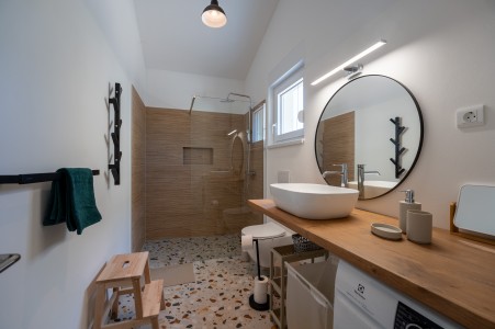 Ungefähr fünfzehn Gehminuten von Medulin entfernt liegt das freistehende Häuschen für maximal 4 Personen. Im Außenbereich erwartet Sie ein gepflegter Garten mit Terrasse, privatem Aufstellpool (7,3 x 3,6 m, Tiefe 1,20-1,25 m), Sonnenliegen und Grill. Ausgestattet mit allen Annehmlichkeiten für einen angenehmen Aufenthalt, ist dieses Haus ideal für alle, die ihren Urlaub in vorteilhafter Lage verbringen möchten, während Strand und lebhafte Küstenstädte leicht erreichbar sind. Der nächste Strand ist ca. 900 Meter entfernt, während sich ein Sandstrand namens „Bijeca“ in einer Entfernung von 2,5 km befindet. Zum Zentrum von Medulin sind es 1 Kilometer. Die berühmte Küstenstadt Pula ist nur 8 km entfernt und in jedem Fall einen Besuch wert. Das bekannteste Denkmal und Wahrzeichen der Stadt ist die beindruckende Arena, ein Amphitheater aus der Römerzeit, das nicht nur besichtigt werden kann, sondern auch als einmalige Freiluftbühne für Konzerte und Filmveranstaltungen dient. Das gesamte Haus, sowie Garten und Pool stehen Ihnen zur alleinigen Nutzung zur Verfügung.