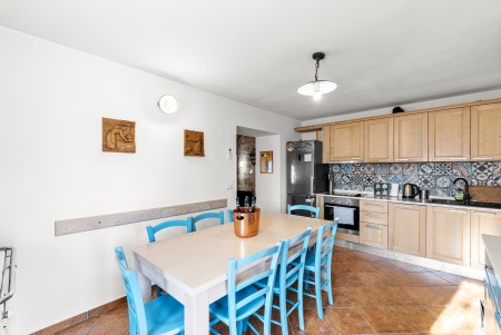Haus für 5-6 Personen: ca. 135 m², verteilt auf drei Etagen. Im Erdgeschoss befinden sich eine komplett ausgestattete Küche mit Essbereich und Klimaanlage, ein Wohnzimmer mit Klimaanlage und Zugang zur Terrasse sowie ein Badezimmer mit Dusche und WC. Im ersten Stock gibt es zwei Schlafzimmer, jeweils mit einem Doppelbett und Klimaanlage, sowie ein Badezimmer mit Dusche und WC. Im zweiten Obergeschoss/Dachgeschoss befinden sich ein Einzelbett, ein Zustellbett (80 x 200 cm), Klimaanlage und SAT-TV.